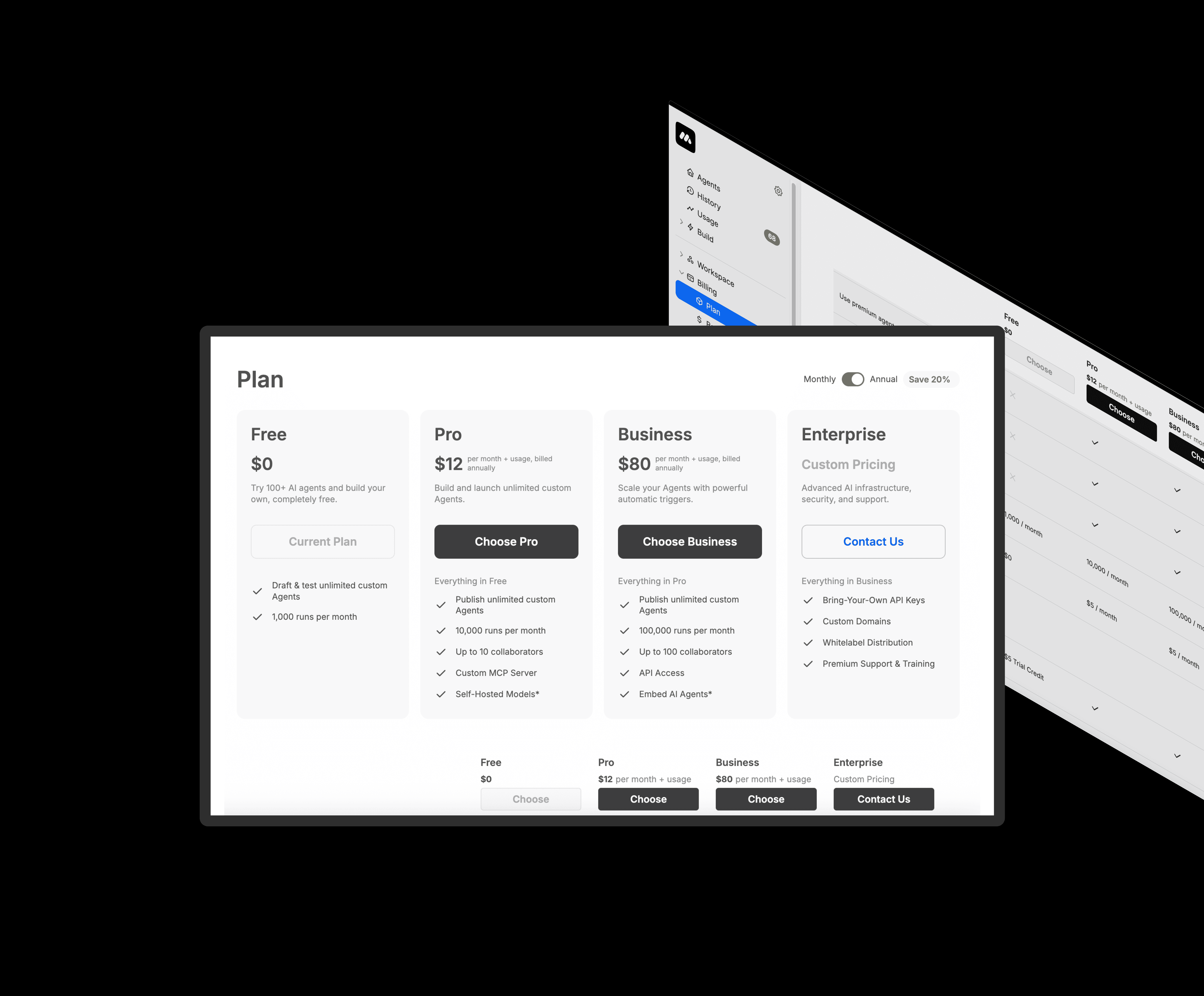 The reimagined UX architecture clarified pricing tiers, feature offerings, and agent access- communicating platform value more effectively and aligning the product’s design system with MindStudio’s broader strategy.